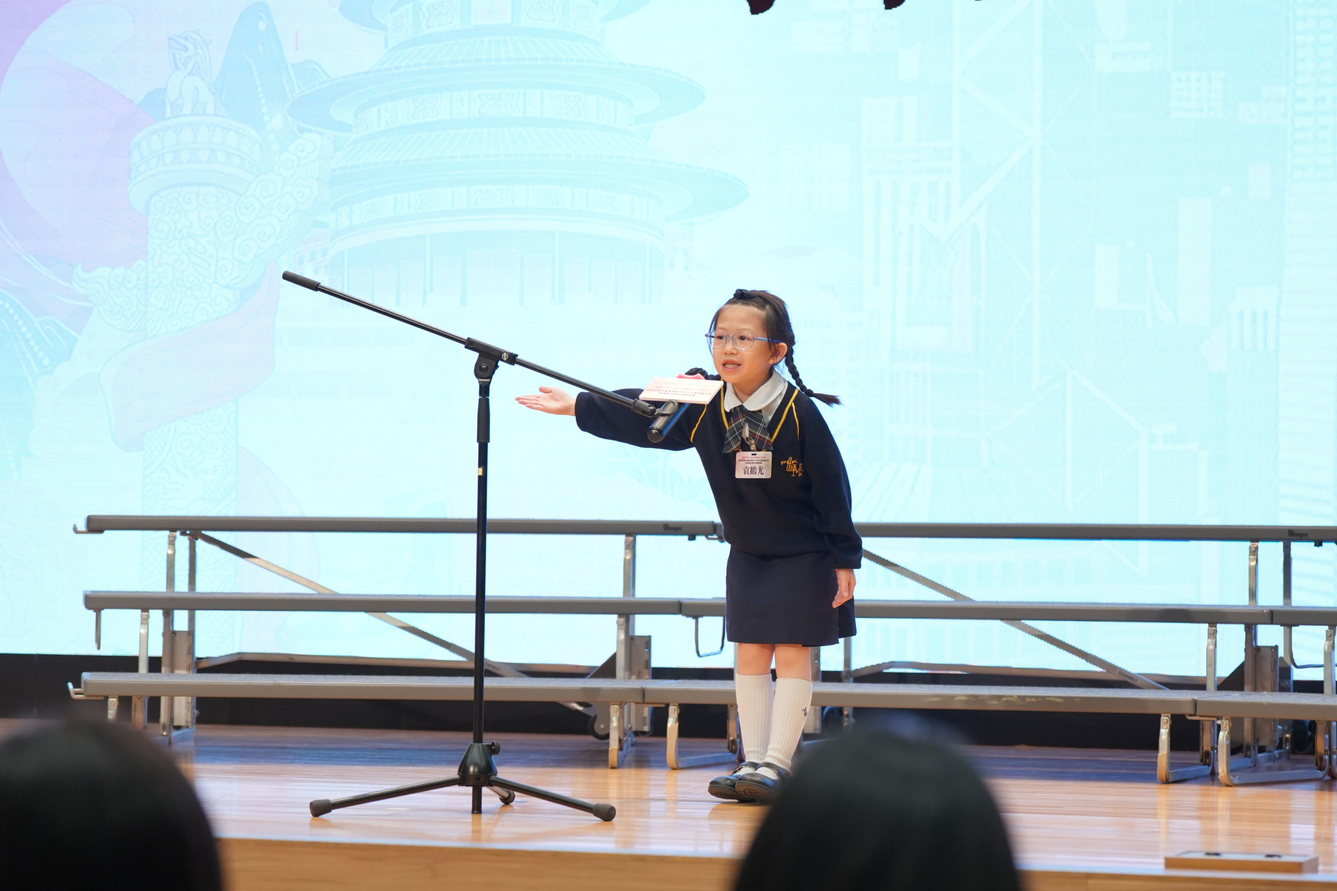 獲得小學組總冠軍的五年級同學林鈺清表示祖國像位慈愛的母親包容、愛護著每一位公民。祖國讓我們在世界的每一個角落,都可以昂首挺胸並驕傲地道出:「我是中國人」。