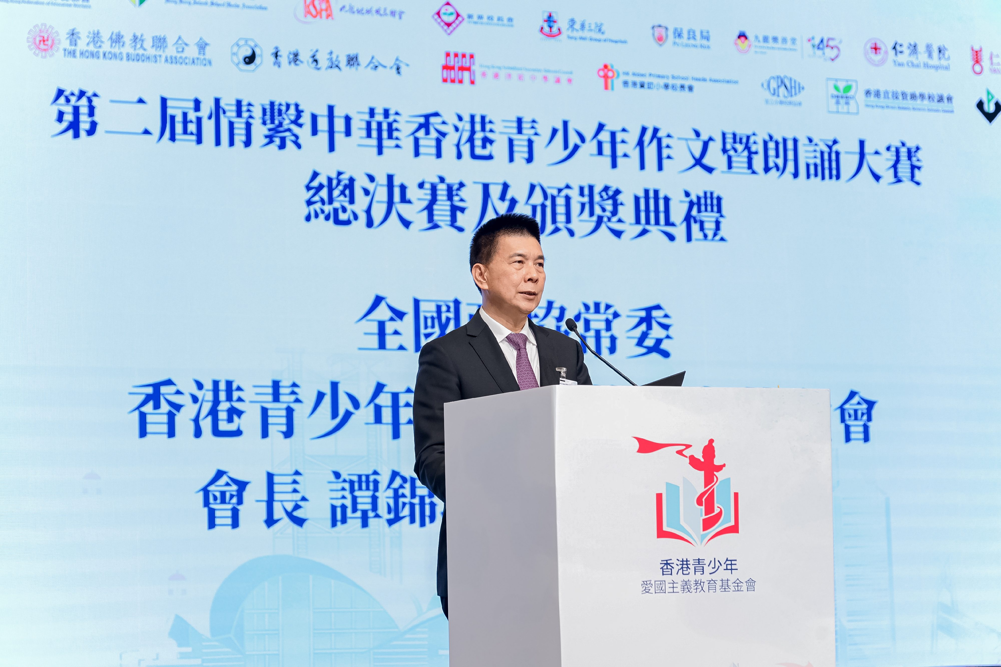 基金會會長譚錦球在致辭時表示,愛國主義是中華民族最寶貴的精神財富,為加強香港青少年愛國主義教育,基金會創立了「情繫中華」品牌活動,邀請全港中小學生以作文創作及朗誦為媒介,增進家國情懷和身份認同。第二屆大賽以「回歸」和「抗戰勝利」為主題,引導同學們探索歷史事件,加深對國家和香港發展進程的了解和認同。